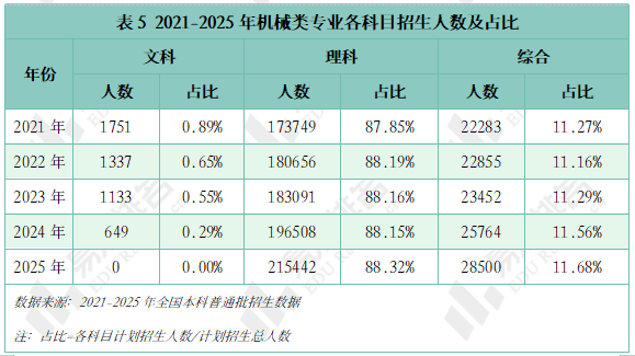 机械类专业招生打算人数逐年添加,机械设想制制及其从动化专业正在整个专业类的占比增速变缓。